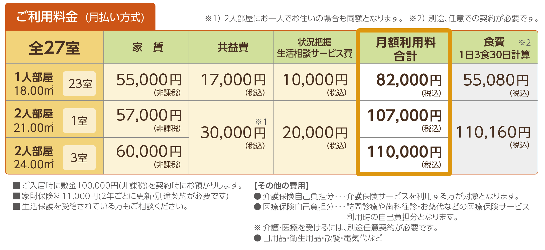 ご入居者様のお身体の状態やサービスのご利用状況など伺い、施設での生活やご利用料金など詳しくご説明いたします。ご不明点やお悩み等なんでもご相談ください。